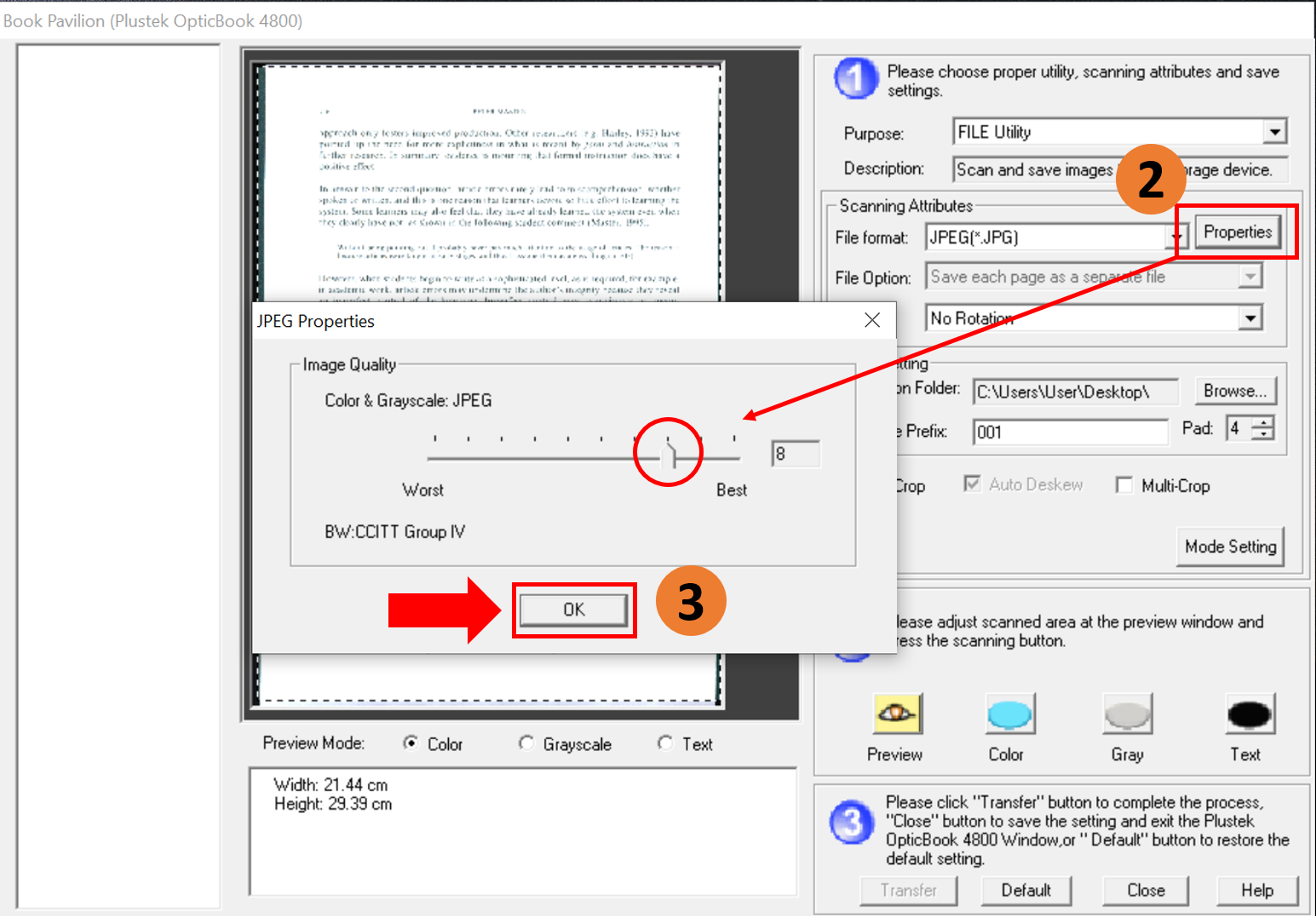 3. Adjust your image/document quality from 1 to 10, if you need to decrease your file size please choose a lower number then click OK.