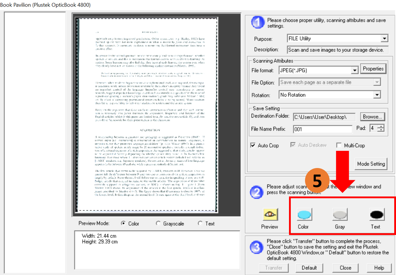 5. Click Scan( Color, Gray,Text) button, after scanning your file will appear at the selected folder.