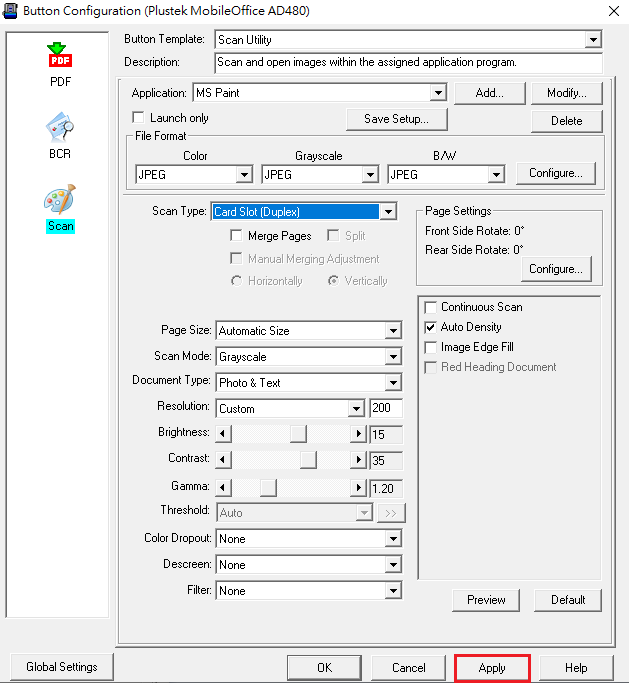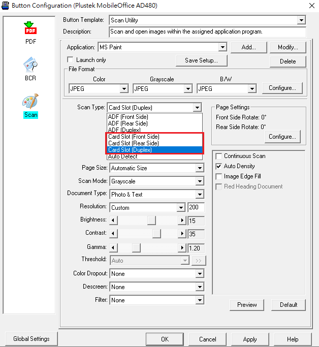 1.Please go to scan type and make sure you select "Card Slot(Duplex)" .