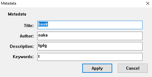 When you try to save the scanned files, please enable "Insert Metadata" in the "Advanced" section and fill data in the upcoming window, then press "Apply".