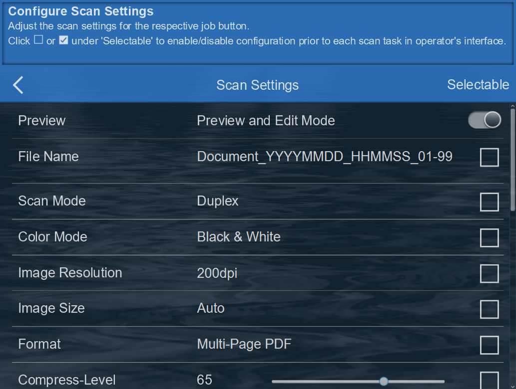 And set "Save to"(2) to Save scanned documents by enabling and configuring the respective scan destination to continue
