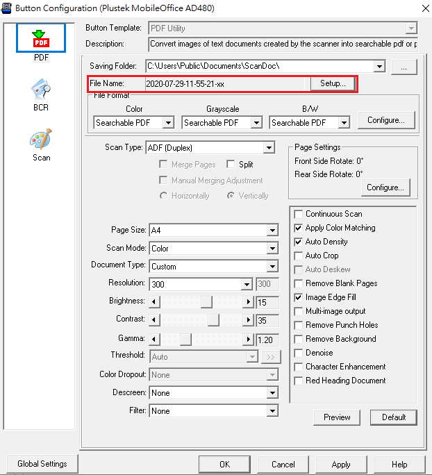 4.You also can choose custom to customize the format as well . Moreover, please remember to click "ok" to save the settings, then your scanned image file will be named with your specific format.
