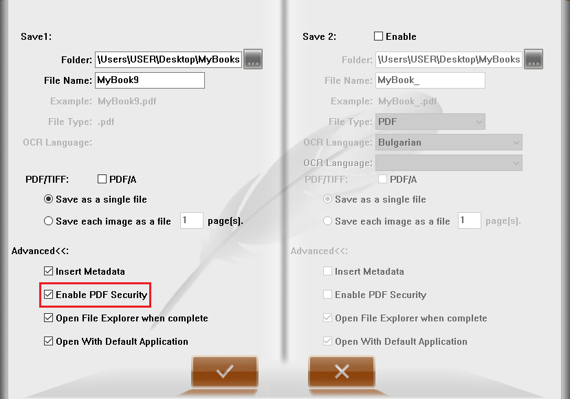 When you save the scanned files, please tick "Enable PDF Security" in setting page.Then fill in the password and press "Apply".