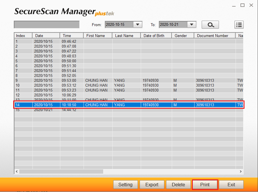 Please select scanned image you want to print, then select "print" on SecureScan Manager to output scanned image to your printer.