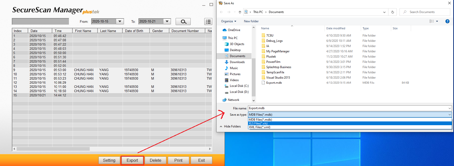 When you scan several passports and have couple of data, you could select different data format to output.Ex: XML, XLS or MDB