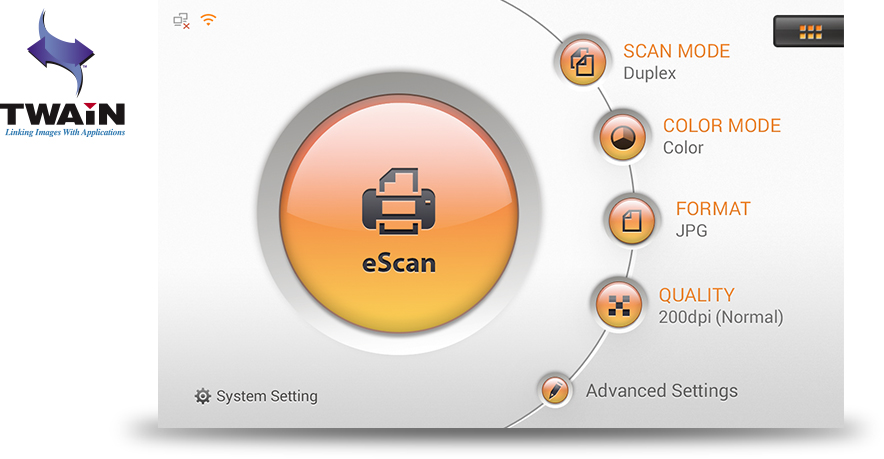 eScan also supports TWAIN. You can use eScan with thousands of image enabled applications including Content/Document Management and Electronic Health Records systems.selected models supports network TWAIN, please refer to the specification for more detail.